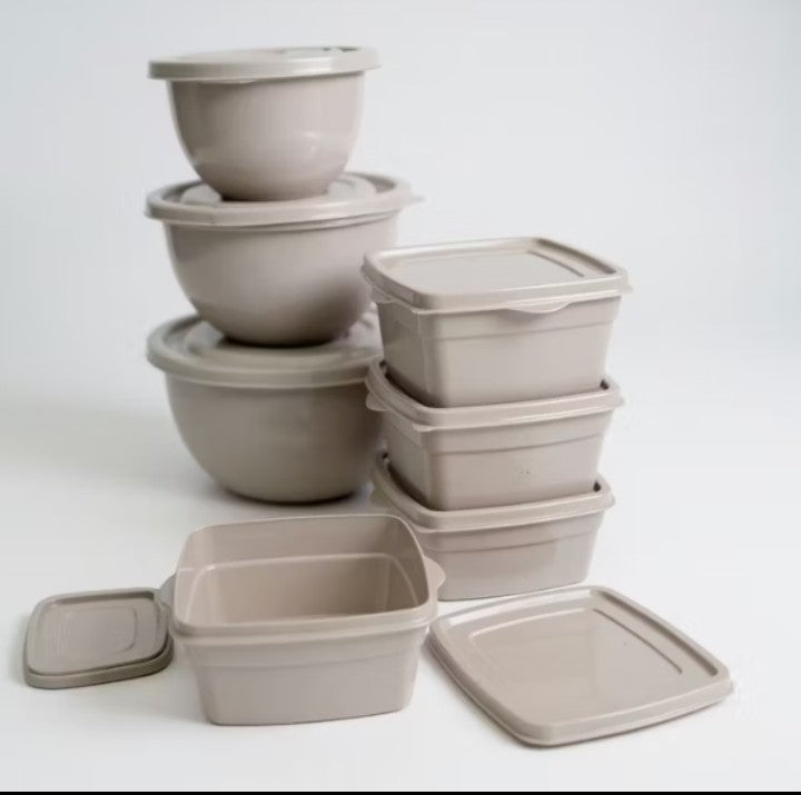 Os potes são atóxicos, livres de BPA, empilháveis, com alças práticas e podem ir do freezer ao micro-ondas sem preocupações.